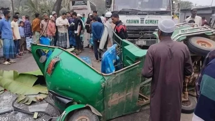 প্রত্যক্ষদর্শীরা জানান, ট্রাক পার্কিং করে পার্শ্ববর্তী মসজিদে ফজরের নামাজ আদায় করতে যান চালক। ট্রাক পার্কিং অবস্থায় একটি অটোরিকশা ওভারটেক করতে গেলে অপরদিক থেকে আসা বোগদাদ পরিবহনের একটি বাসের মুখোমুখি সংঘর্ষ হয়। ঘটনাস্থলেই অটোরিকশায় থাকা তিন যাত্রী নিহত হন।