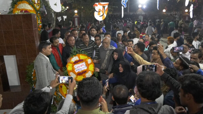 নওগাঁ: মহান শহীদ দিবস ও আন্তর্জাতিক মাতৃভাষা দিবস উপলক্ষে রাত ১২টা ১ মিনিটে নওগাঁয় শহরের মুক্তির মোড়ে কেন্দ্রীয় শহীদ মিনারে ভাষা শহীদদের প্রতি শ্রদ্ধা নিবেদন করেন খাদ্যমন্ত্রী । পরে একে একে জেলা প্রশাসক, পুলিশ সুপার, মুক্তিযোদ্ধা সংসদসহ সর্বস্তরের মানুষের ঢল নামে ভাষা শহীদদের প্রতি শ্রদ্ধা জানাতে।