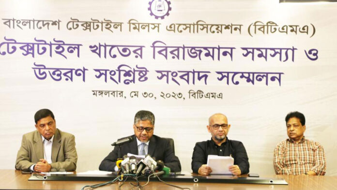 আজ (মঙ্গলবার) রাজধানীর পান্থপথে ‘বাংলাদেশ টেক্সটাইল মিলস অ্যাসোসিয়েশন (বিটিএমএ)’ কার্যালয়ে এক সংবাদ সম্মেলনে এসব দাবি জানান বিটিএমএর সভাপতি মোহাম্মদ আলী। বস্ত্র খাতের বিরাজমান সমস্যা ও উত্তরণ সংশ্লিষ্ট এ সংবাদ সম্মেলনে আরও উপস্থিত ছিলেন- সংগঠনটির সহসভাপতি ফজলুল হক, পরিচালক সৈয়দ নূরুল ইসলাম, আবদুল্লাহ জুবায়ের, খোরশেদ আলম প্রমুখ।