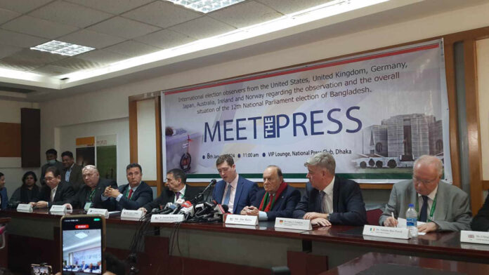 সদ্য সমাপ্ত জাতীয় নির্বাচন নিয়ে বিদেশি পর্যবেক্ষকদের প্রতিক্রিয়া জানাতে সোমবার (৮ জানুয়ারি) জাতীয় প্রেস ক্লাবে সংবাদ সম্মেলনের আয়োজন করা হয়। এতে সাত দেশের পর্যবেক্ষক উল্লিখিত মন্তব্য করেন।