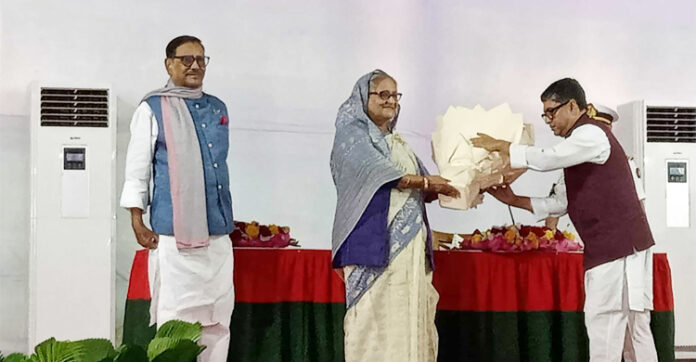 এ সময় অনুষ্ঠান মঞ্চে উপস্থিত ছিলেন বঙ্গবন্ধুর ছোট মেয়ে শেখ রেহানা। স্বাগত বক্তব্য রাখেন আওয়ামী লীগ সাধারণ সম্পাদক ওবায়দুল কাদের।
