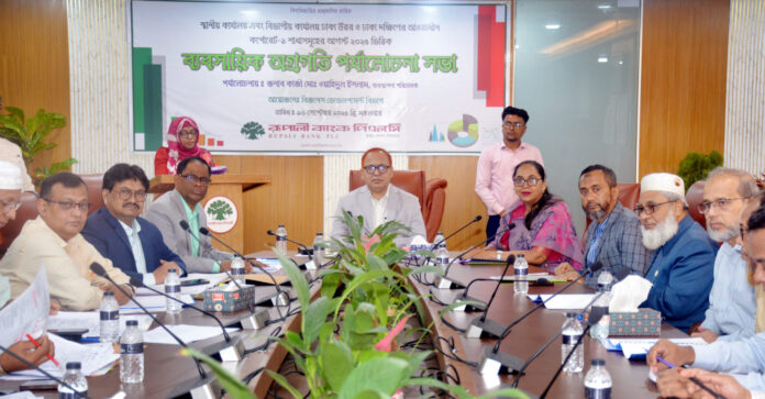 সরকারি মালিকানাধীন রূপালী ব্যাংক পিএলসি’র স্থানীয় কার্যালয়, বিভাগীয় কার্যালয় ঢাকা উত্তর ও ঢাকা দক্ষিণের আওতাধীন কর্পোরেট-১ শাখাসমূহের আগস্ট ২০২৫ ভিত্তিক ব্যবসায়িক অগ্রগতি পর্যালোচনা সভা অনুষ্ঠিত হয়েছে। ১৬ সেপ্টেম্বর (মঙ্গলবার) দিলকুশাস্থ ব্যাংকের প্রধান কার্যালয়ে অনুষ্ঠিত সভায় প্রধান অতিথি হিসেবে বক্তব্য রাখেন ব্যাংকের ব্যবস্থাপনা পরিচালক কাজী মো. ওয়াহিদুল ইসলাম। এ সময় ব্যবস্থাপনা পরিচালক শ্রেণীকৃত ঋণ হতে আদায়, সিএমএসএমই ঋণ বিতরণ এবং মুনাফার লক্ষ্যমাত্রা অর্জনসহ বিভিন্ন বিষয়ে সংশ্লিষ্ট সকলকে নির্দেশনা প্রদান করেন।