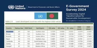 জাতিসংঘের ই-সরকার উন্নয়ন সূচকে বাংলাদেশের উন্নতি