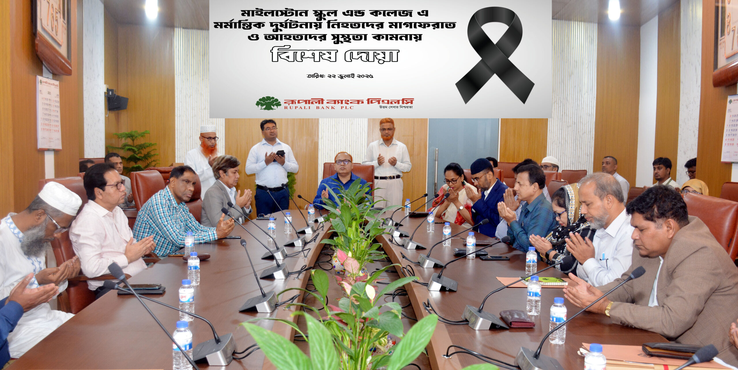 মাইলস্টোন স্কুল অ্যান্ড কলেজে নিহতদের আত্নার মাগফিরাত কামনায় রূপালী ব্যাংকে বিশেষ...