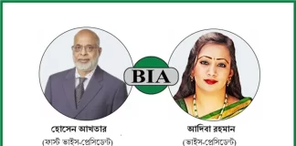 হোসেন আখতার ও আদিবা রহমান বিআইএ’র নতুন ভাইস প্রেসিডেন্ট
