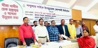 সিলেটে বীমা দাবির ৩ কোটি ১৬ লাখ টাকার চেক হস্তান্তর করল...